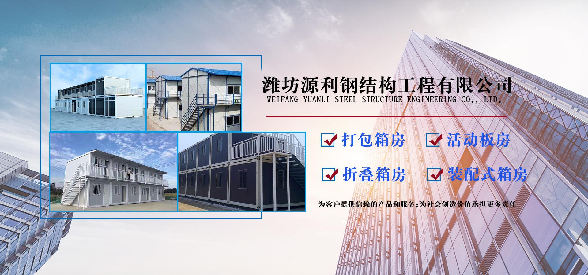 濰坊源利鋼結構工程有限公司成立于2015年,是一家從事活動房屋,鋼結構設計、制作、安裝為一體的公司。公司坐落于風景秀麗的藍寶石之鄉(xiāng)昌樂開發(fā)區(qū),占地約60畝,年加工生產(chǎn)能力到40萬平米,現(xiàn)已發(fā)展成本地較大的鋼結構企業(yè),同時也已跨入集成房屋研發(fā)、推廣企業(yè)行列。公司配備了全套的箱房流水線生產(chǎn)設備,包含了全自動冷彎成型設備、流水自動涂裝線、沖壓型材生產(chǎn)線以及全套的配套設備,標準化、模具化生產(chǎn)加工,年生產(chǎn)5000套打包箱,產(chǎn)品保障。 公司主要產(chǎn)品有:鋼結構工程加工、制作、安裝;各類活動板房、打包箱房、裝配式箱房、折疊箱房、圍擋、料棚、異型H型鋼、屋面板、墻面板、樓承板,C型鋼,Z型鋼;馬路隔離護欄等相關產(chǎn)品。